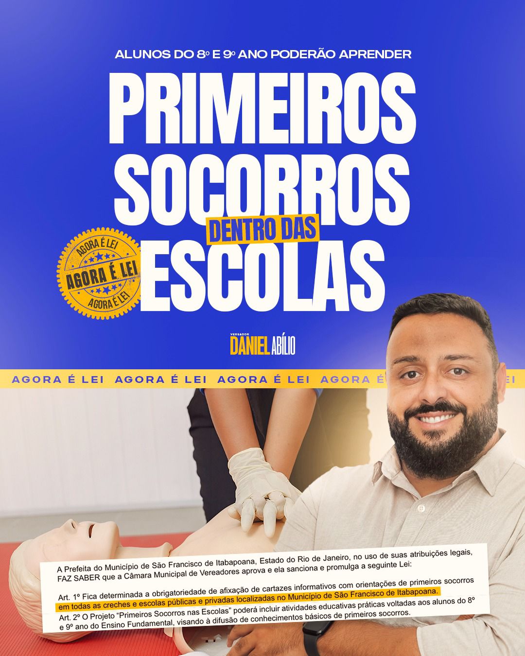 Lei dos primeiros socorros nas escolas é Sancionada em São Francisco de Itabapoana: Mais uma Lei de autoria do Vereador Daniel Abílio.